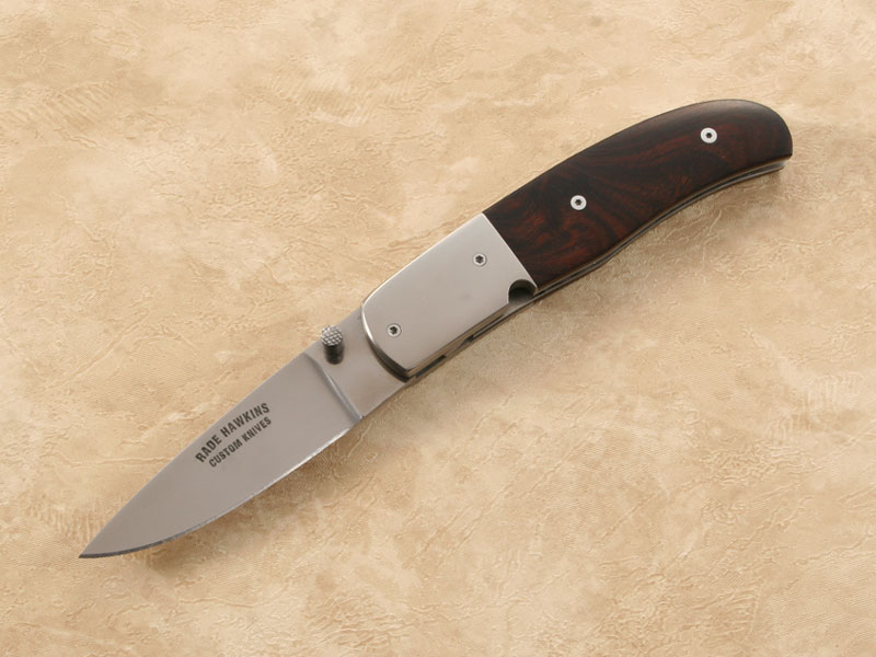 This folder feels good in the hand. It has a beautiful set of ironwood handle scales and is well balanced with the weight-reducing addition of titanium liners.